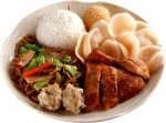 Combination of chicken supreme, pancit canton, chicharap, buchi, pork siomai, plain rice and served with gravy sauce.