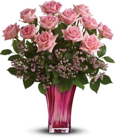 This 3 dozen perfectly pink! Beautifully simple, this exquisite mix of pink roses finds its perfect complement in a fabulously glass vase