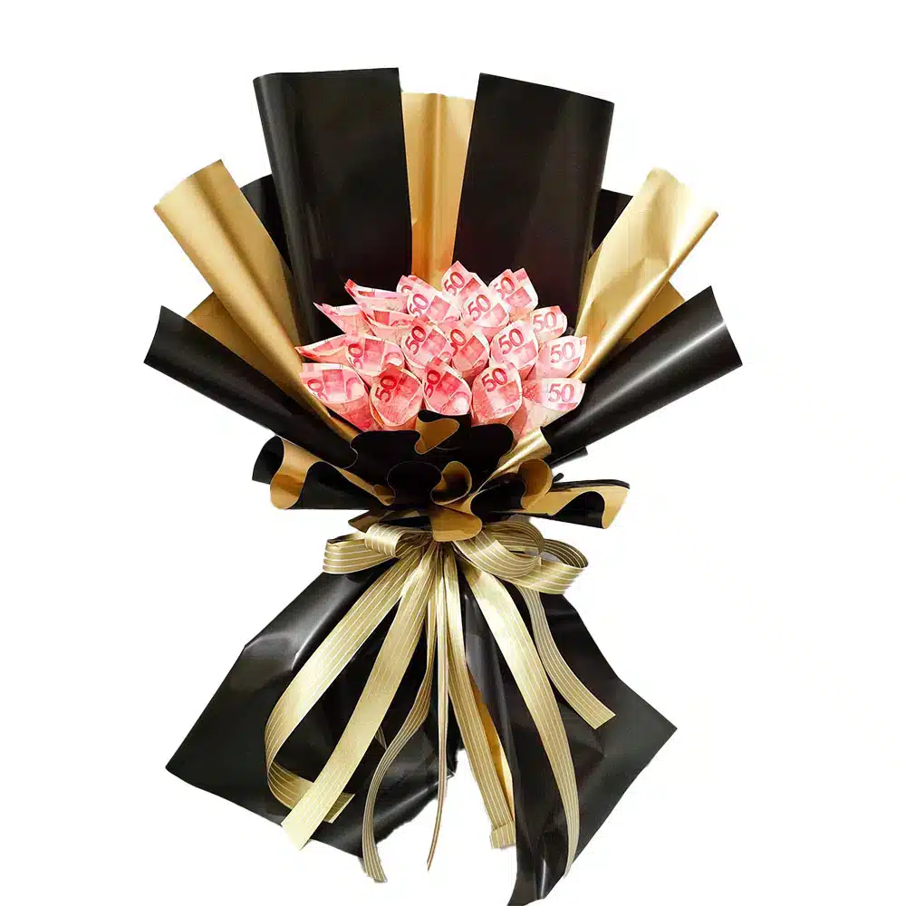 Money Bouquet arrangement of 1,000 Php in 50’s denomination (20pcs bills)