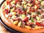 Richly decked with nine delicious toppings – beef, ham, Italian sausage, pepperoni, pork, bell pepper, mushrooms, onions and pineappleRichly decked with nine delicious toppings – beef, ham, Italian sausage, pepperoni, pork, bell pepper, mushrooms, onions.